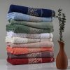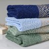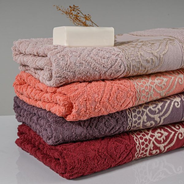 Esta toalha recebe o desenho em Jacquard, e é beneficiada com tingimento reativo que impede a alteração da cor original e garante solidez. Sua composição é em 100% algodão, massa pura de fibras longas e fio convencional dupla torção, proporcionando super maciez. Seu barrado é composto por poliéster metalizado exaltando as características do desenho, fazendo jus ao estilo que a inspirou.
